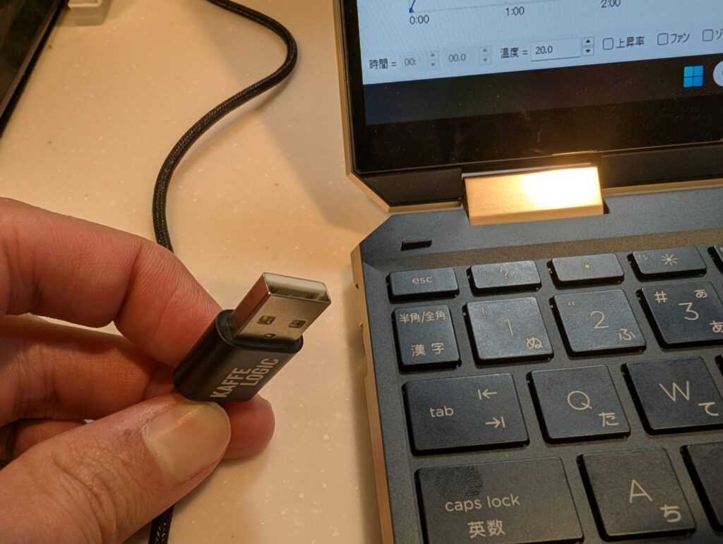 - 付属のケーブルでKaffelogic studioを起動しているPCに接続