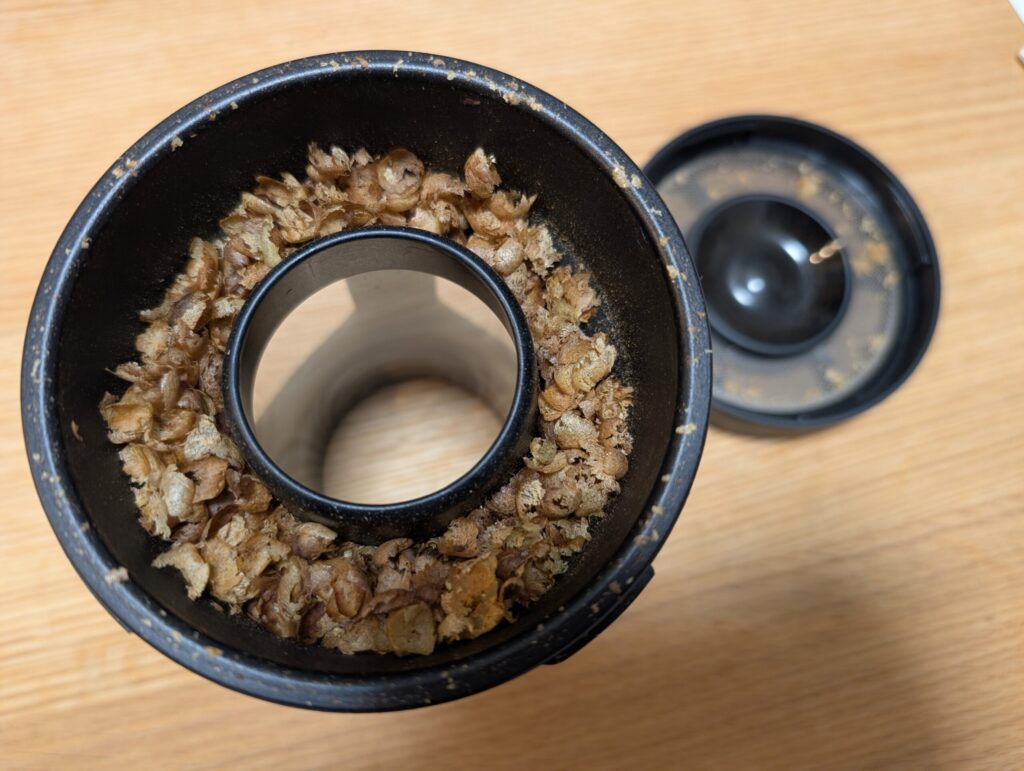 焙煎後の豆の状態確認とチャフの清掃