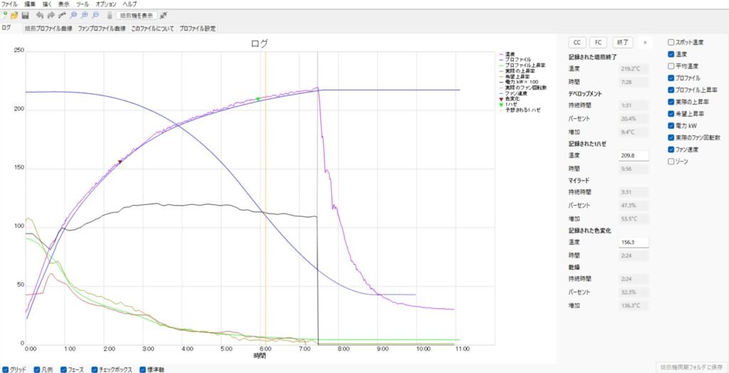 - 焙煎開始と同時にログ取得が始まり