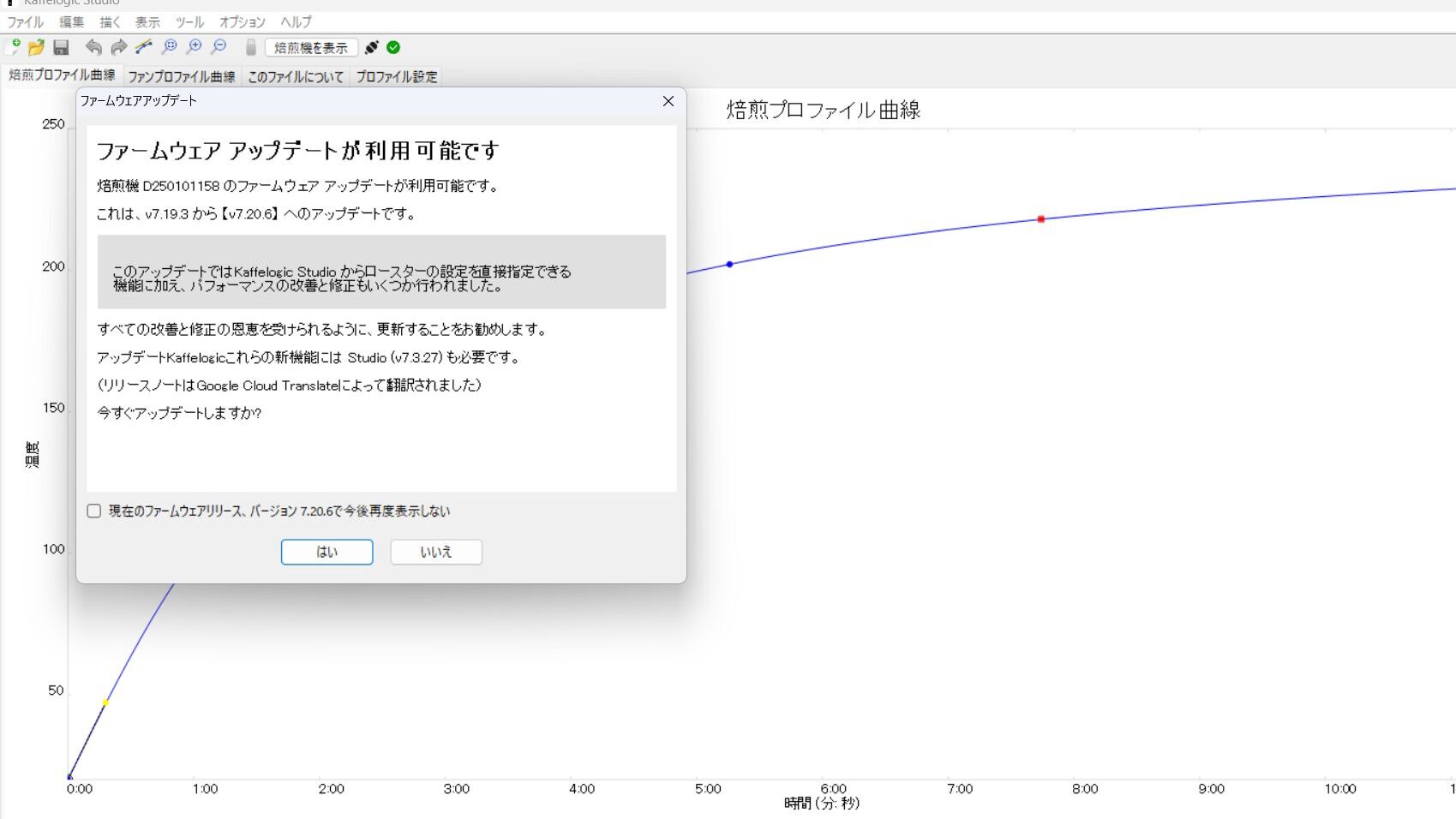 ▶︎ Kaffelogic Studio がすぐ切断される原因と対処法(別記事)