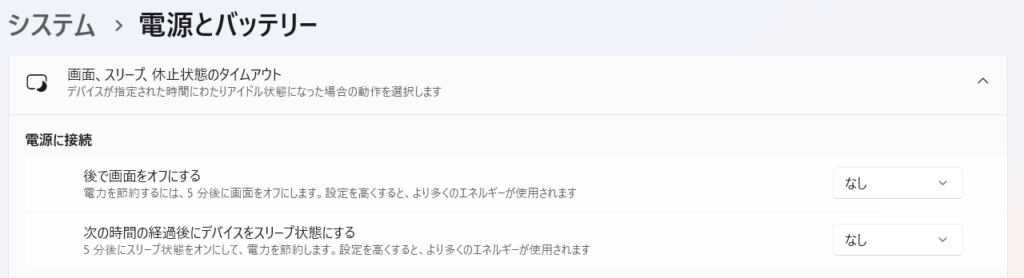 図4:「電源とバッテリー」設定の編集画面(すべて「なし」に設定)
