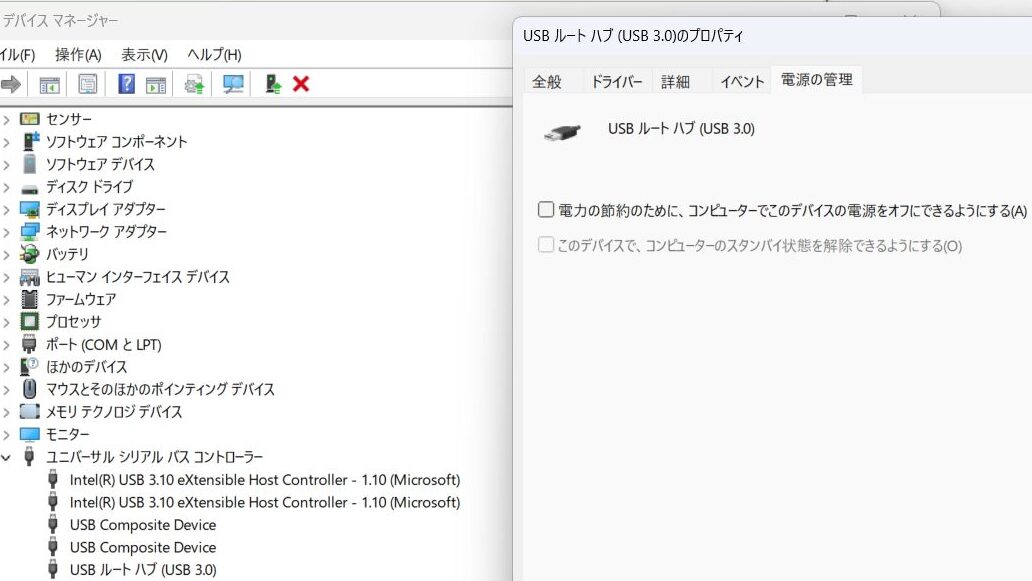 対処法① USBルートハブの省電力を無効にする(最重要)